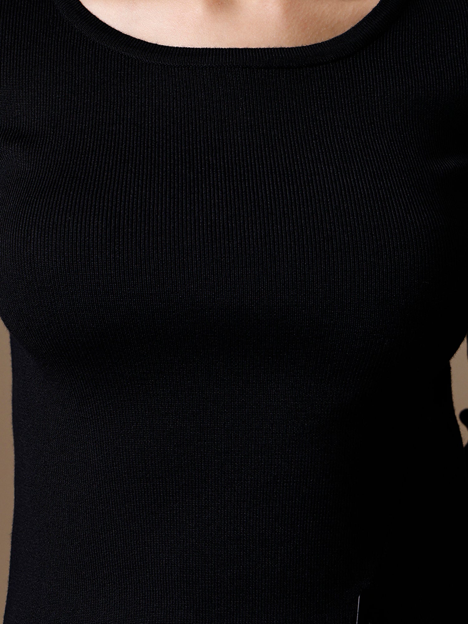The Black Winter Top features a classic round neck, full sleeves, and a standout buckle detail a modern twist on a cozy essential for chic, cold-weather dressing.