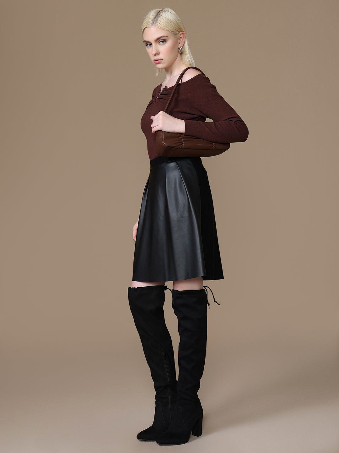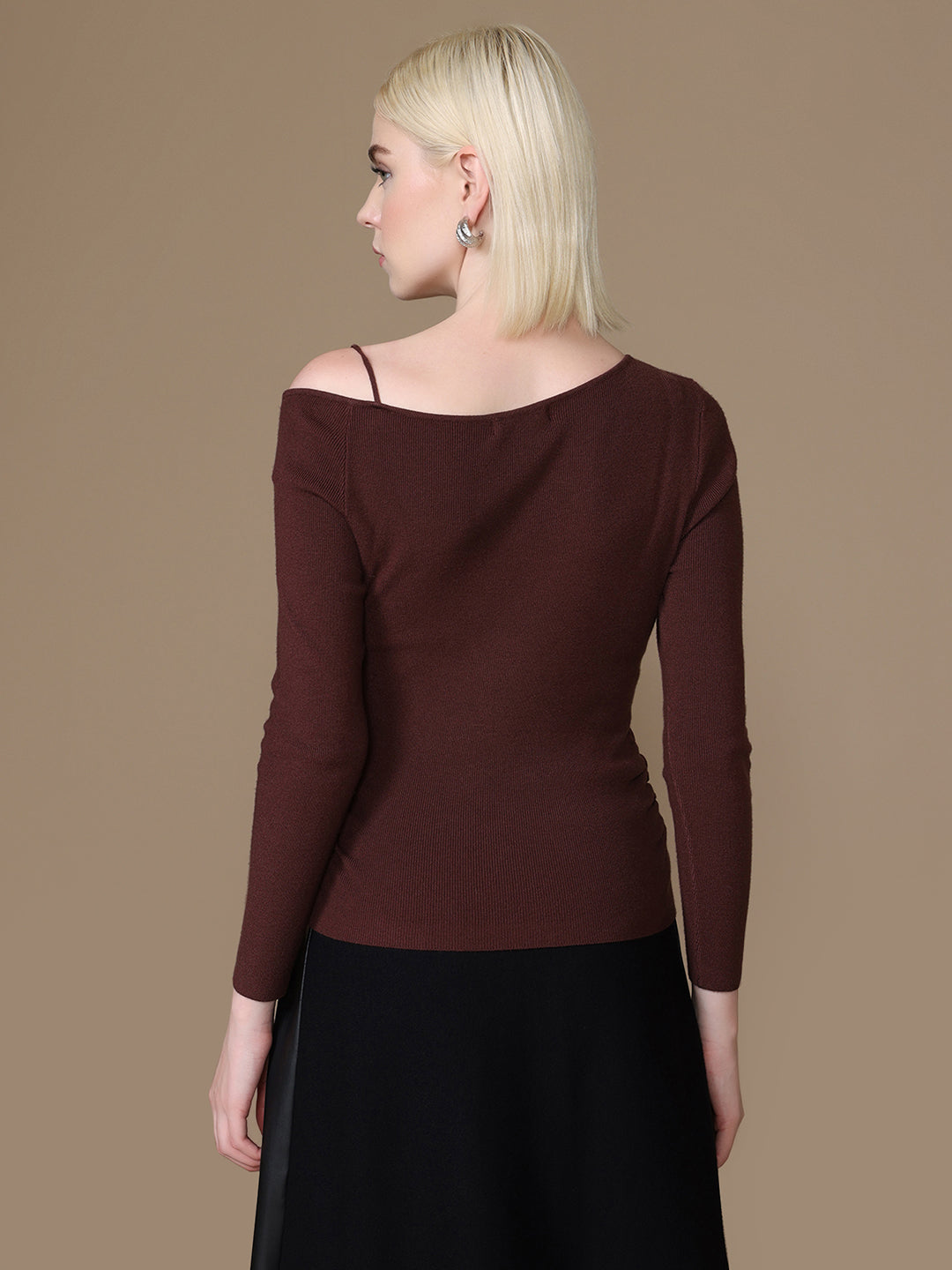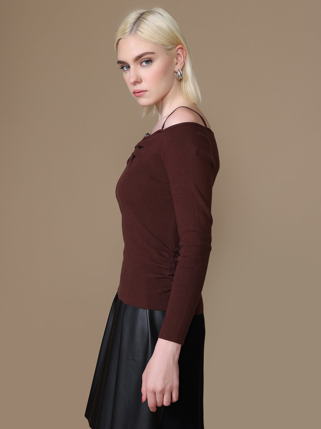 The Asuka Winter Top in brown features ring detail with ruching, full sleeves, and a sleek silhouette—perfect for adding a modern twist to cozy winter dressing.