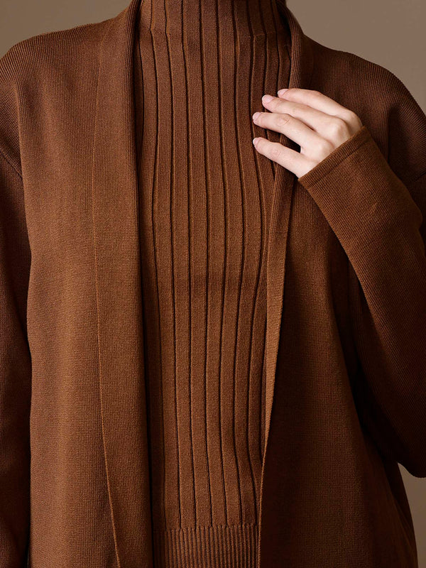 The Brown Thrice Co-Ord Set is designed for three-way versatility. Featuring a longline overlay top with full sleeves and a clean straight silhouette, paired with mid-rise wide-leg trousers, it delivers a sleek, modern look. Style it three ways – wear as a full set, layer the top as an overlay, or pair the trousers separately for endless options.