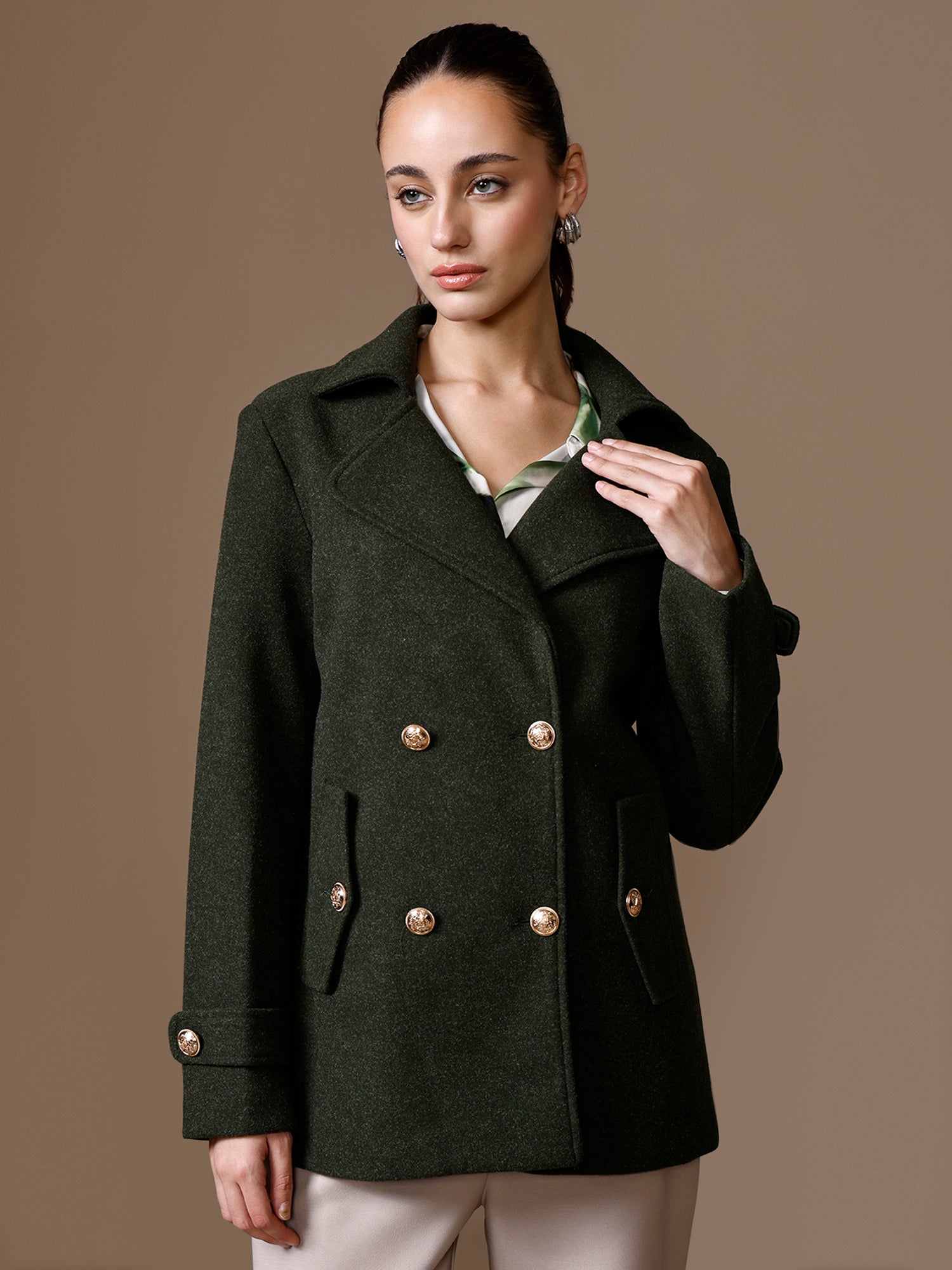 The Beige Izza Overcoat is a timeless classic crafted for elegance and functionality. Featuring a double-breasted front with a notch lapel collar, it exudes sophistication. Pocket detailing and sleeve tab accents add utility and style, while the fully lined design ensures comfort and structure. A versatile wardrobe staple for polished layering.