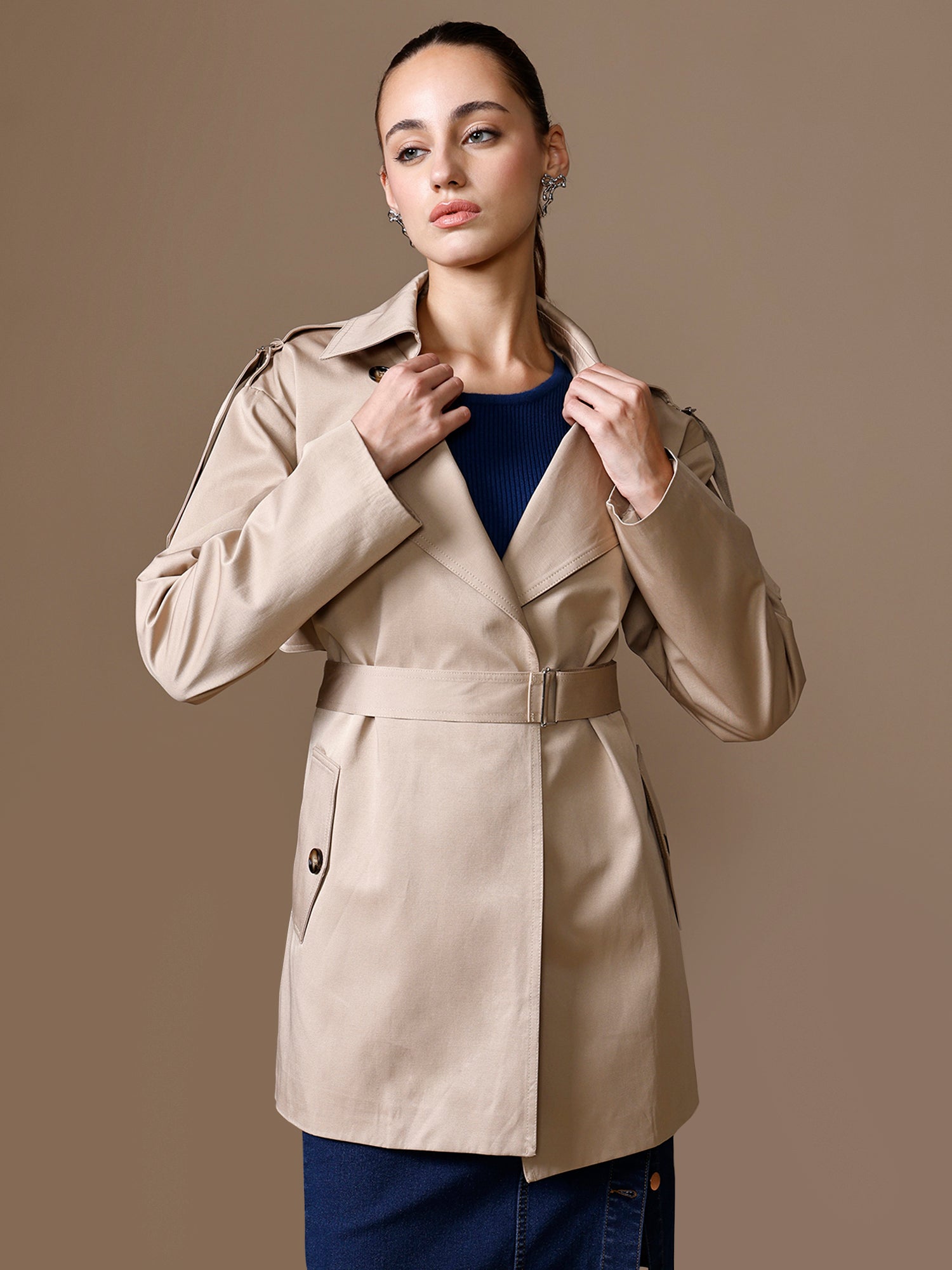 The Camel Berry Overcoat is a refined trench-style layer with timeless appeal. Featuring a double-breasted front, notch lapel collar, and full sleeves, it’s finished with a waist belt for a flattering silhouette. Fully lined for comfort, this classic overcoat is a versatile essential for polished, all-season layering.