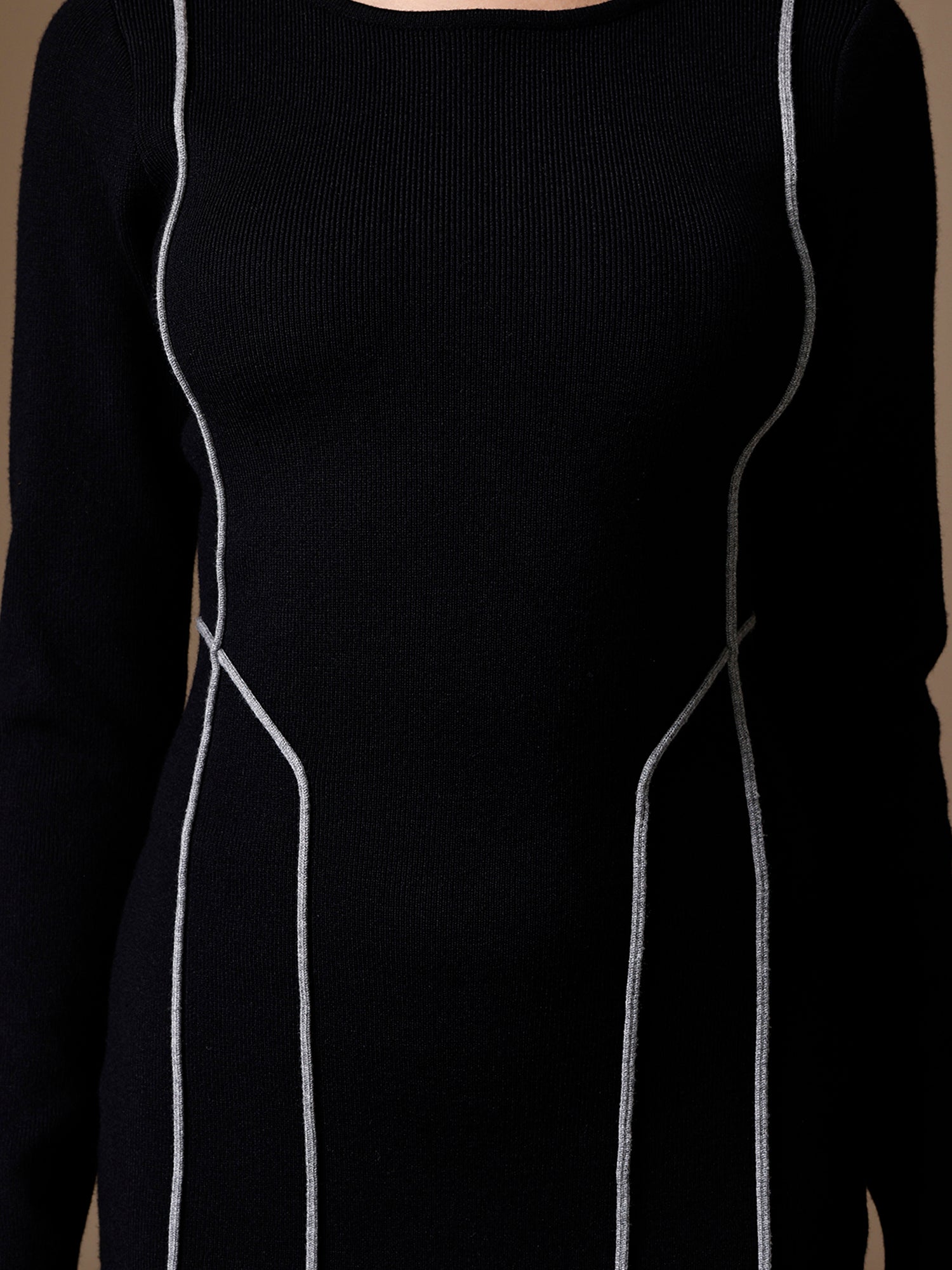 Sleek and modern, the Caro Midi Dress is designed with colourblock detailing that enhances the silhouette for a flattering fit. Crafted in a soft, stretchable knit, it features a round neckline, fitted sleeves, and a classic midi length that transitions effortlessly from workdays to evenings out.