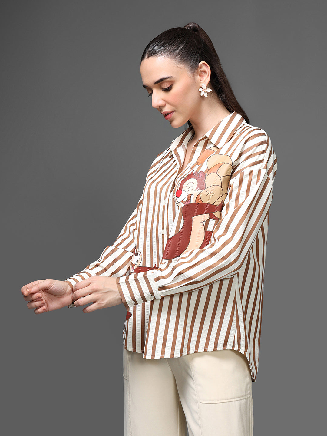 The Disney Chip n Dale Shirt brings a playful twist to classic stripes with adorable character artwork of the iconic chipmunk duo. Fun, lively, and stylish, this shirt adds a cheerful personality to your everyday look while keeping the silhouette neat and polished.