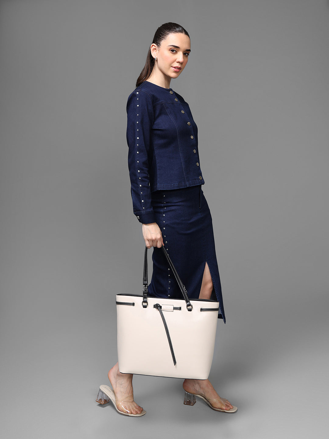 The Isabel Midi Skirt is a sleek denim essential crafted in a straight, body-flattering silhouette. Designed with a clean front, functional pockets, and a refined midi length, it offers the perfect balance of structure and comfort. This versatile piece transitions effortlessly from casual day looks to elevated evening styling.