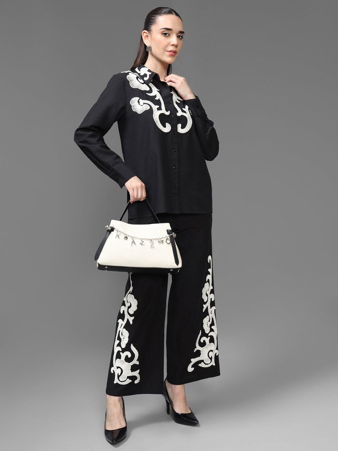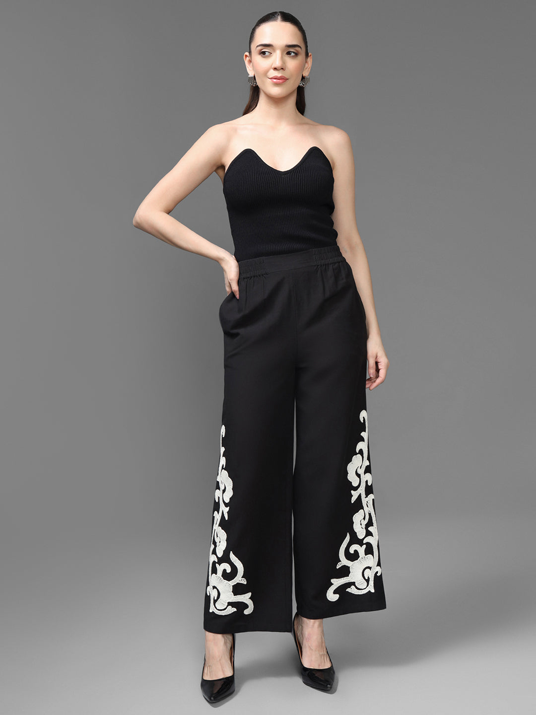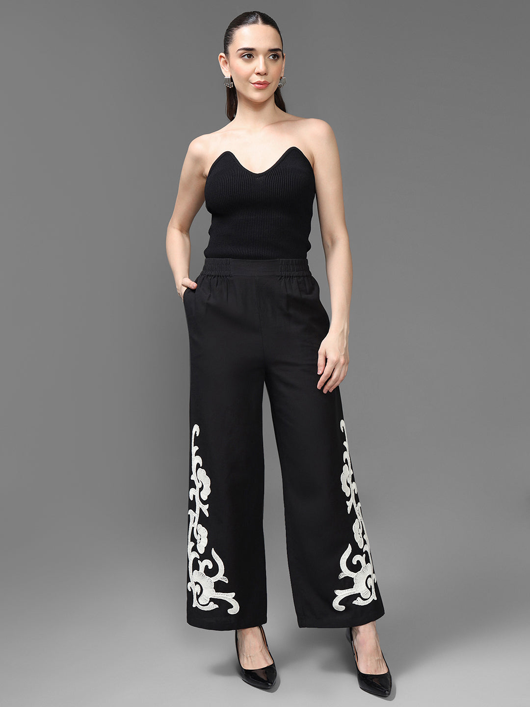 Effortlessly stylish, the Crosby Pull-On Pants combine comfort with contemporary elegance. Designed in a sleek black fabric, they feature bold embroidered detailing along the sides, adding a touch of statement artistry to a timeless silhouette. With a relaxed fit and elasticated waistband, these pants ensure all-day comfort while maintaining a polished appearance. The lightweight, flowy fabric makes them perfect for both casual chic and elevated looks. Pair the Crosby Pull-On Pants with the matching Crosby Shirt for a coordinated ensemble that radiates modern sophistication.