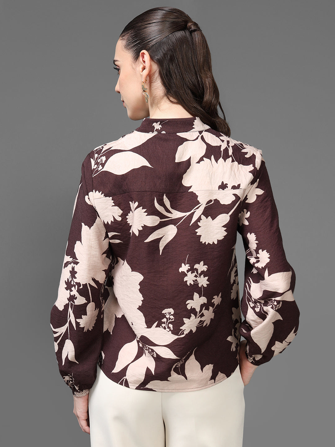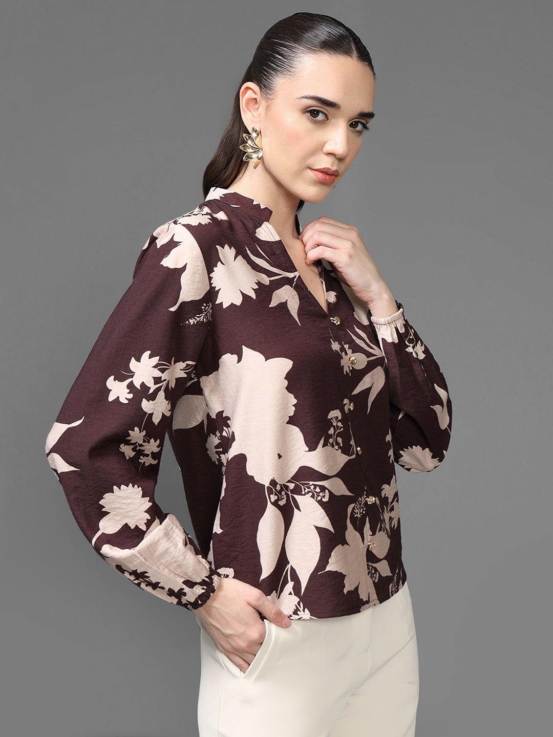 Effortlessly elegant, the Streep Blouse blends soft femininity with a bold statement print. Featuring a rich brown base adorned with cream floral motifs, this blouse exudes timeless sophistication with a modern edge. Crafted from lightweight, flowy fabric, it offers a relaxed silhouette with a V-neckline and long sleeves that drape beautifully for a flattering look. The subtle gathers at the cuff add a touch of refinement. Perfect for day-to-night wear, the Streep Blouse pairs effortlessly with tailored trousers or denims for a polished yet relaxed ensemble.