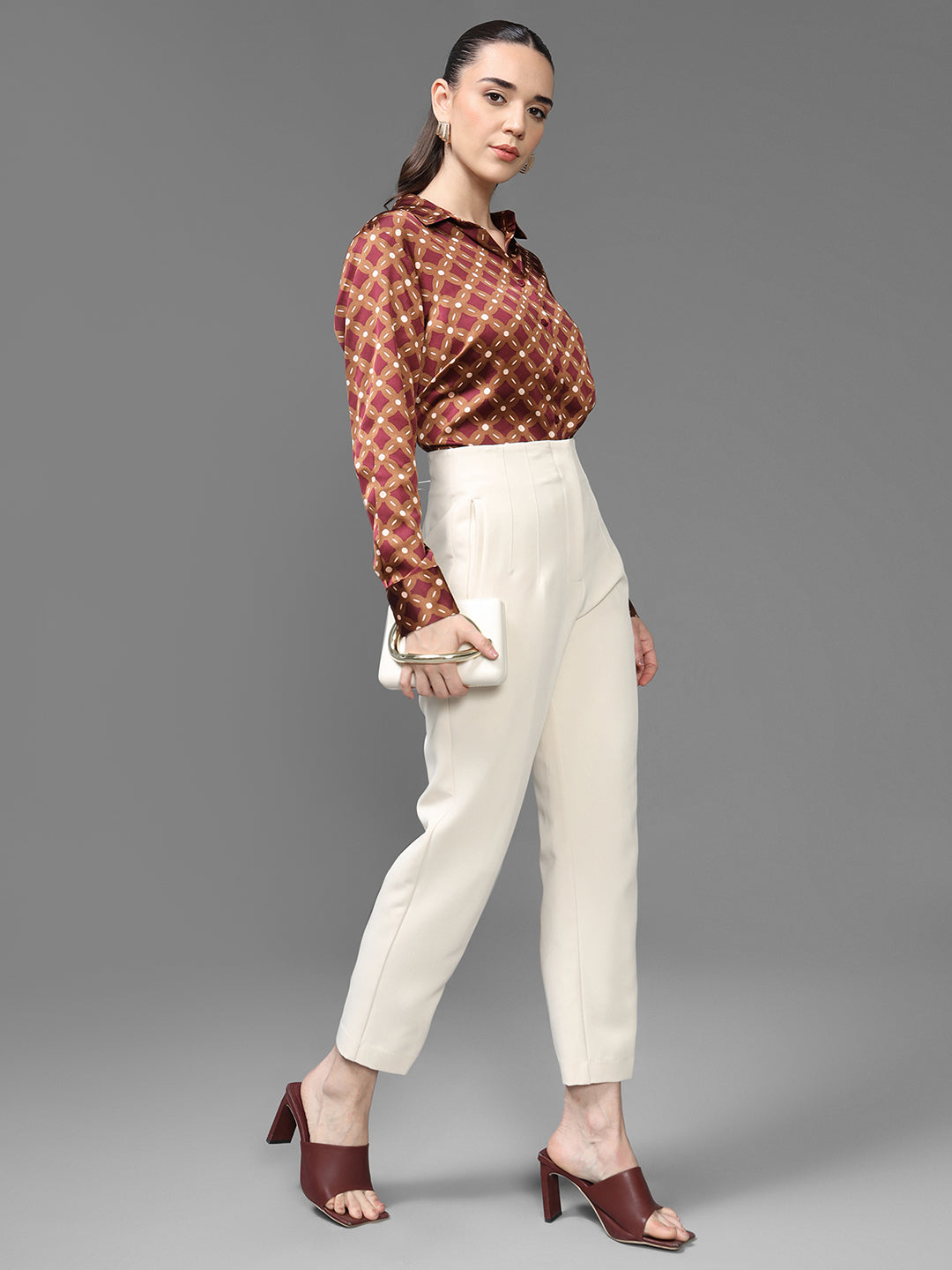 Elevate your everyday style with the Carnaby Shirt, a perfect mix of retro charm and modern sophistication. Designed in a rich brown base with an eye-catching geometric print, this shirt brings effortless elegance to both workwear and casual looks. Crafted from smooth, breathable fabric, it offers all-day comfort with a classic collared neckline, front button placket, and full sleeves for a polished finish. Pair it with tailored trousers for office chic or style it with denims for a laid-back weekend vibe.