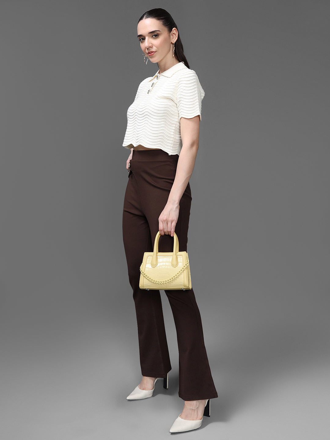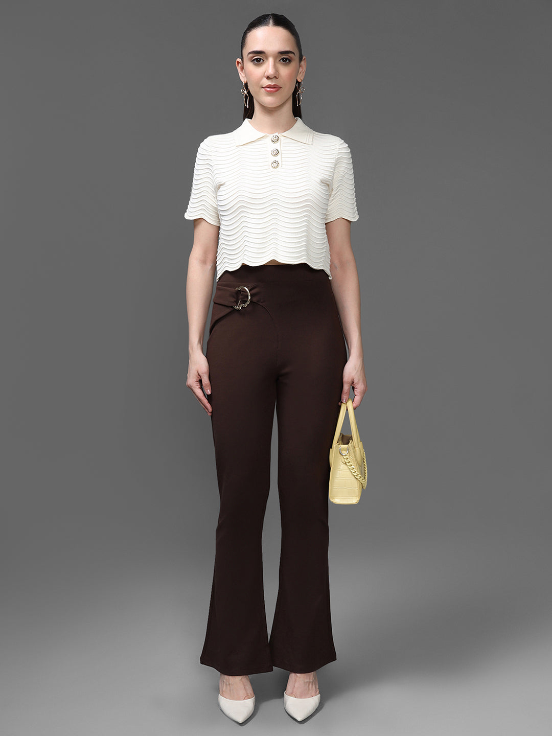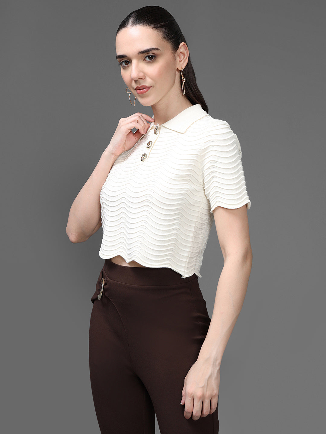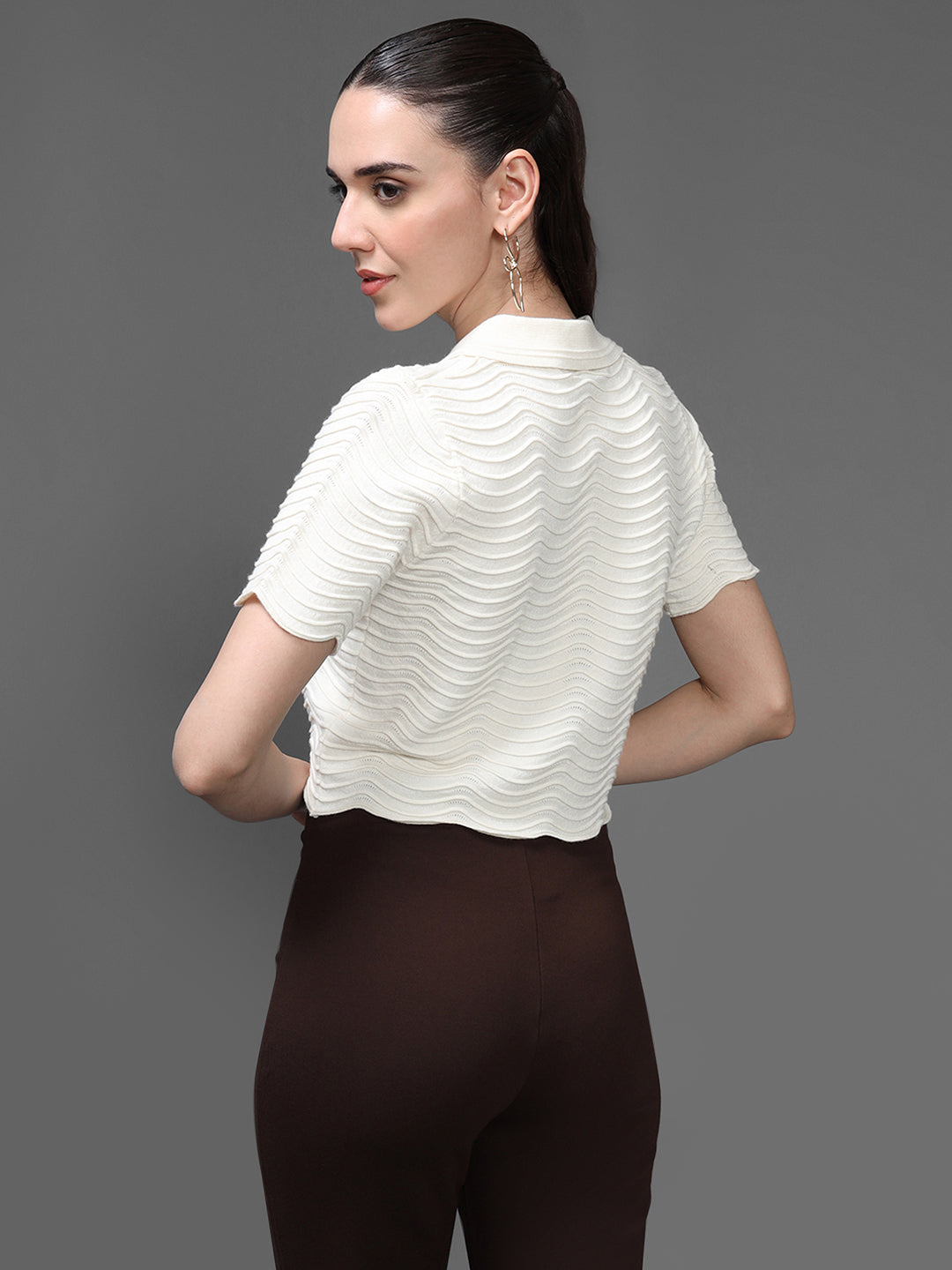 This chic textured knit top blends comfort and style effortlessly. Designed with a soft woven pattern, it features a classic collar and front button placket for a polished yet relaxed look. The neutral beige tone makes it easy to pair with matching bottoms or mix with your wardrobe essentials. Perfect for casual days, weekend outings, or relaxed office wear, this top offers a stylish balance of elegance and ease. Its breathable fabric and structured silhouette ensure all-day comfort while keeping your look refined. An ideal choice for modern, minimal dressing.