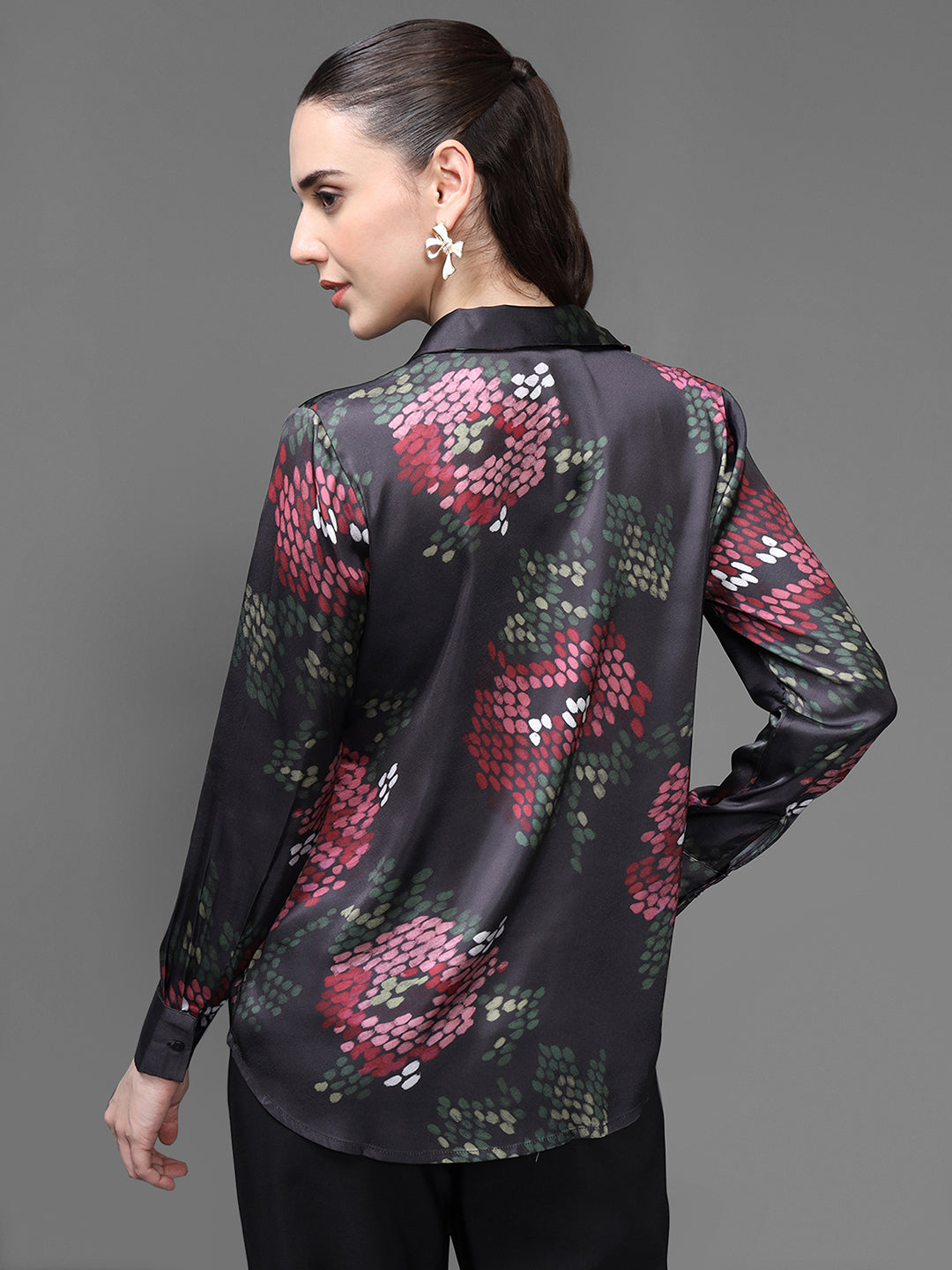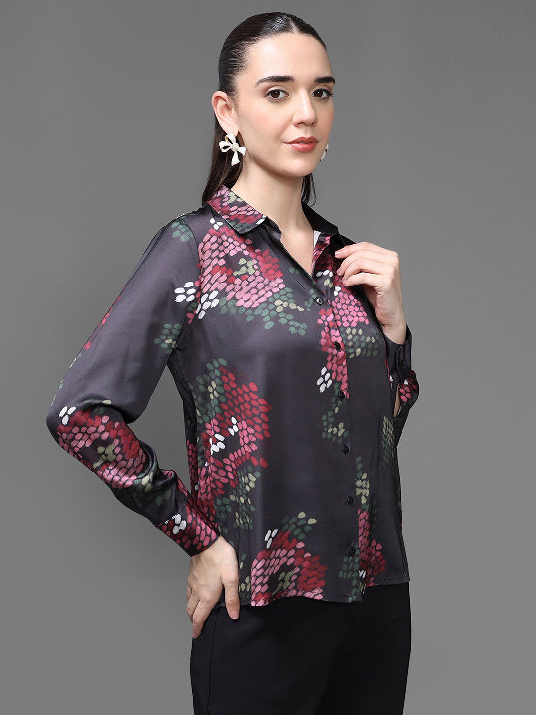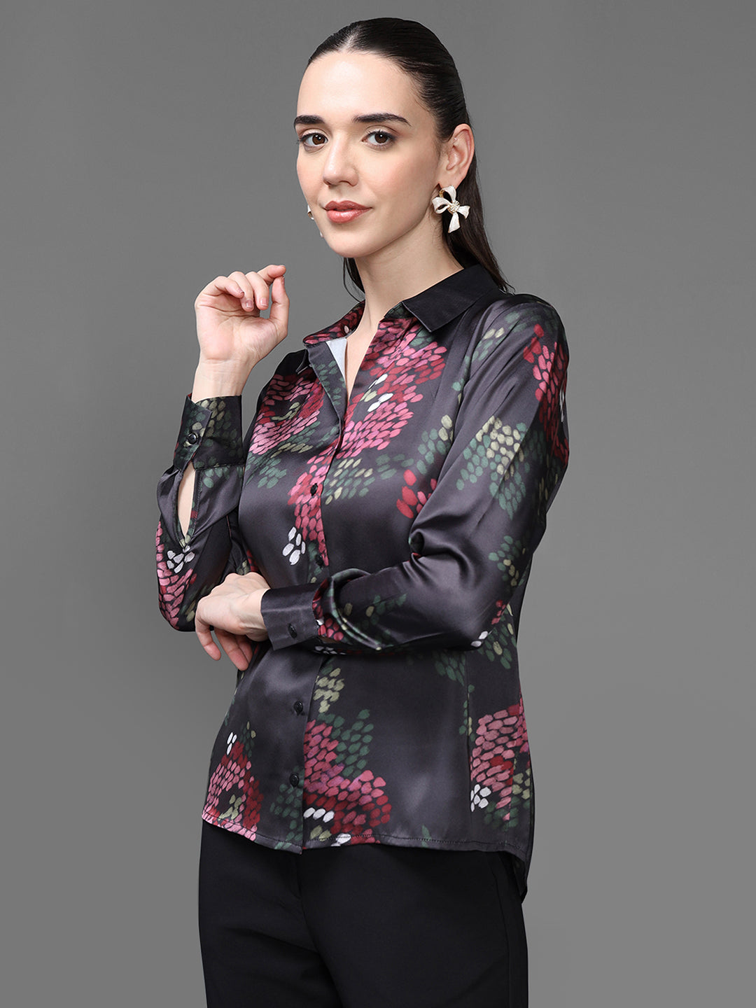 The Perihan Shirt is a chic, statement-making piece designed for women who love bold florals with a refined edge. Featuring a deep, luxurious base colour accented with vibrant floral motifs, this shirt effortlessly blends elegance with modern femininity. Its fluid fabric drapes beautifully on the body, offering comfort while maintaining a polished silhouette. Perfect for day-to-night transitions, this versatile shirt elevates any wardrobe with its sophisticated charm.