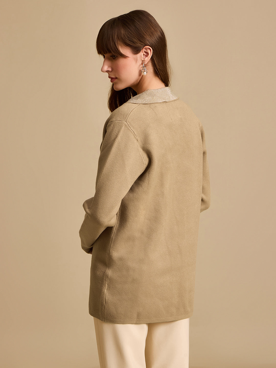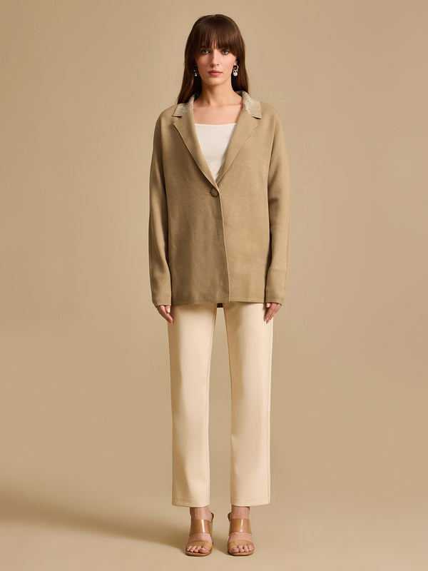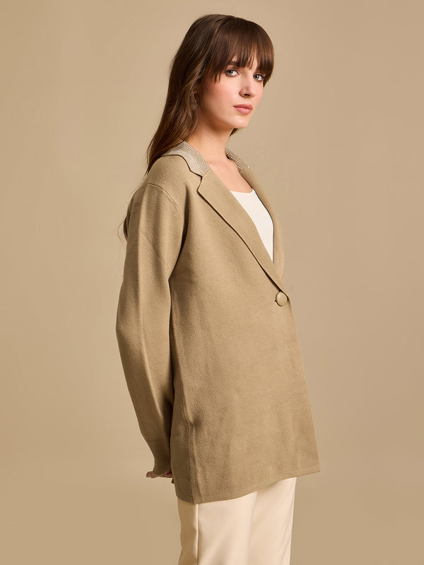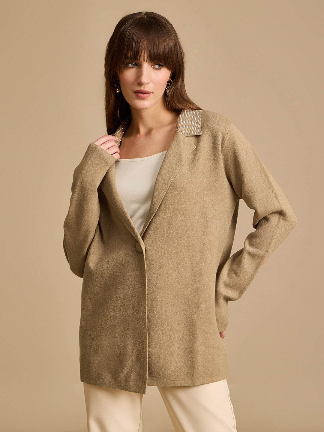 Introducing our Embellished Jacket, the perfect winter layer to enhance your style. This loose-fit knitted jacket combines comfort with elegance, featuring a striking embellished button detail that adds a hint of glamour to your ensemble. The single-button closure creates a sleek silhouette, making it versatile for both casual outings and more sophisticated occasions. Whether you’re pairing it with jeans and a cozy sweater or draping it over a dress for a night out, this jacket ensures you stay warm and stylish. Elevate your winter wardrobe with this chic outerwear essential that effortlessly blends comfort and flair!