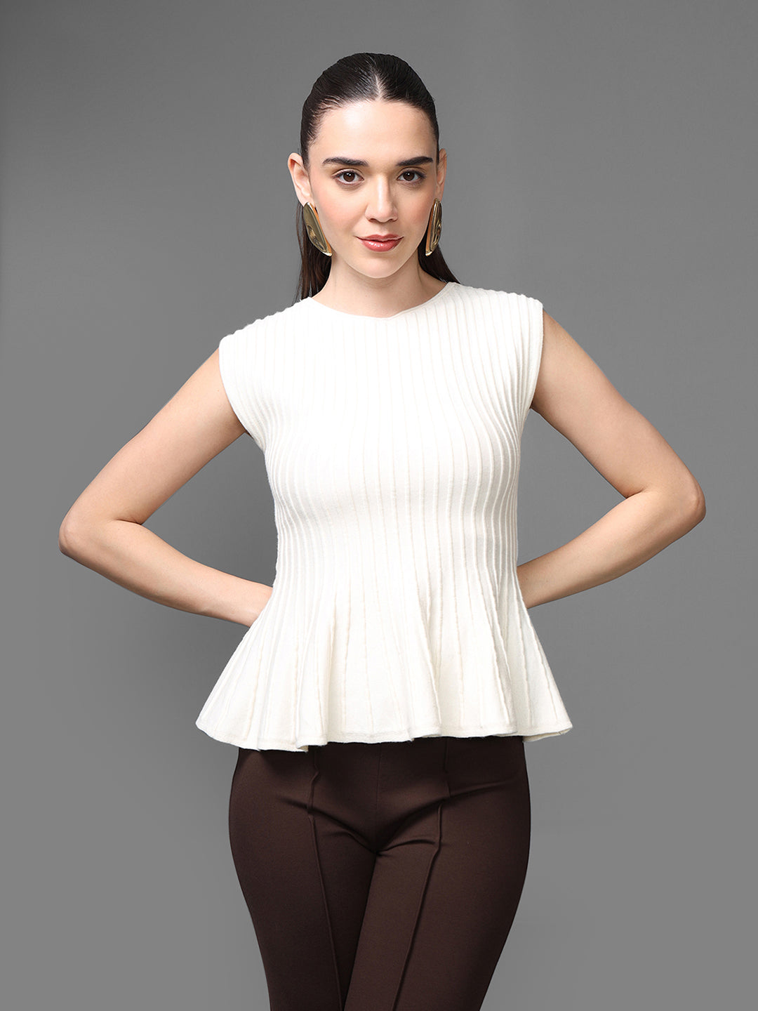 The Metropolitan Top is a clean, contemporary essential featuring a peplum style with a structured sleeveless silhouette. Designed for effortless versatility, it offers a polished look that works seamlessly for both workwear and elevated everyday styling. The minimalist design makes it easy to pair with tailored trousers, skirts, or layered pieces.