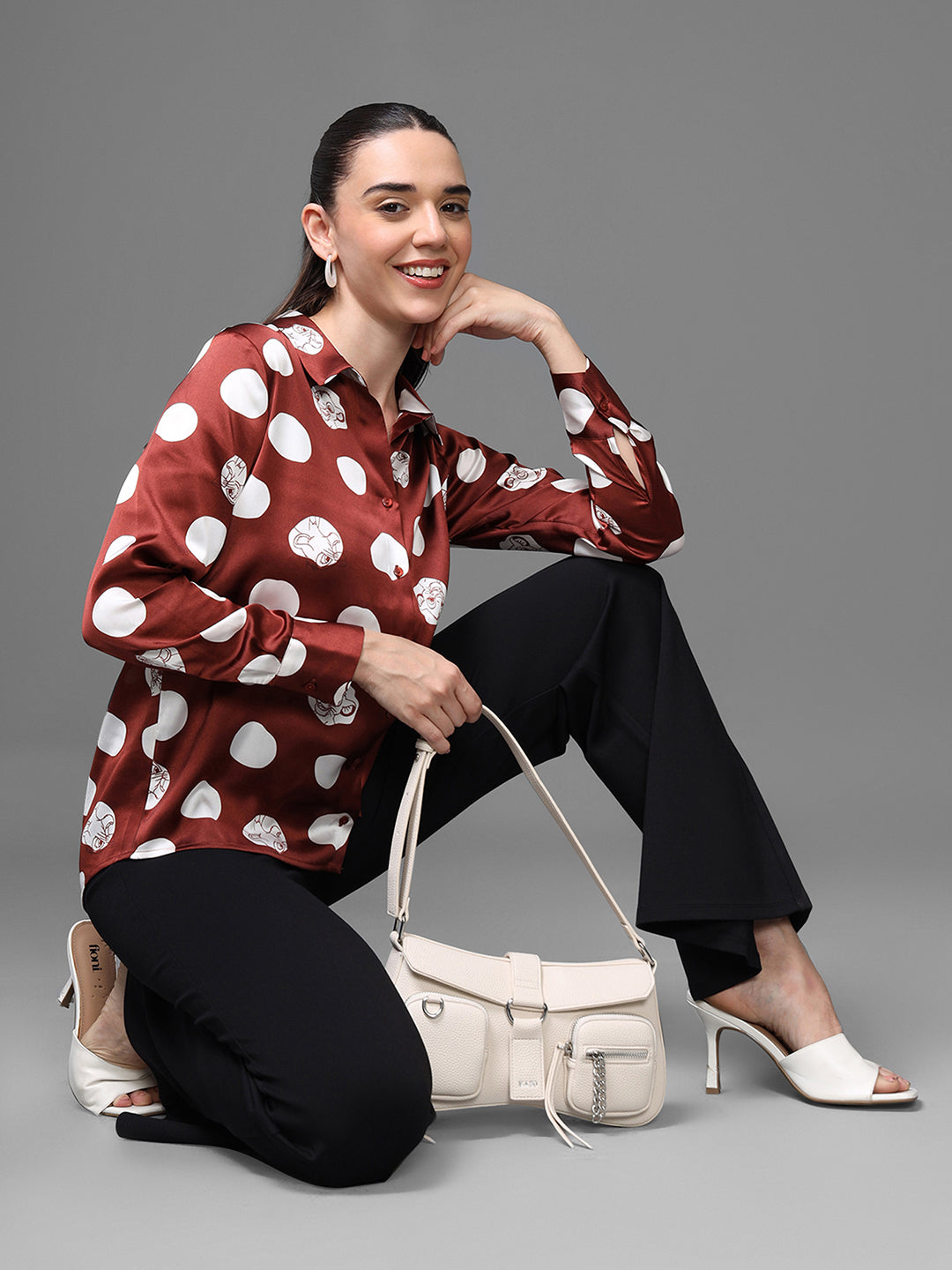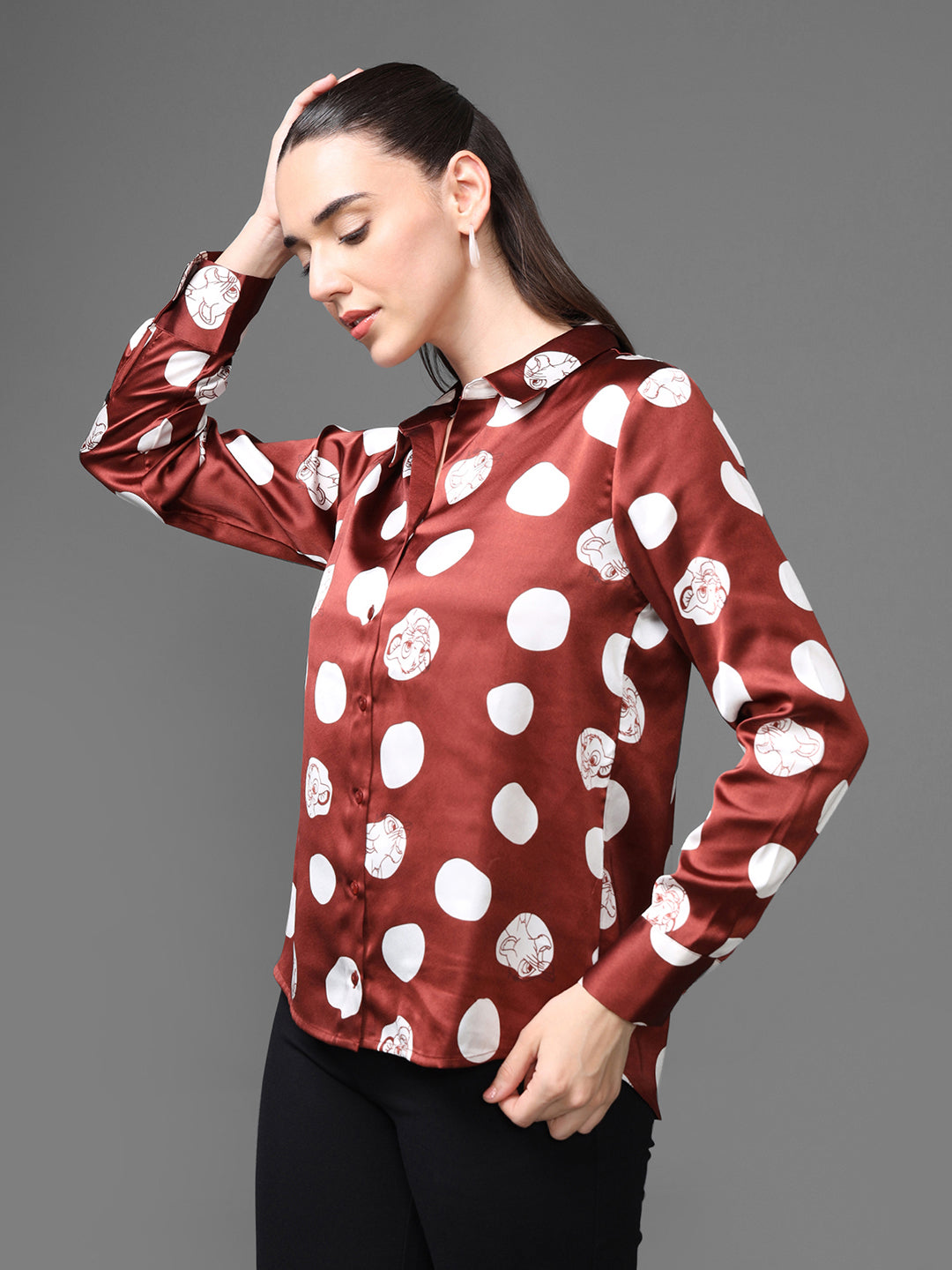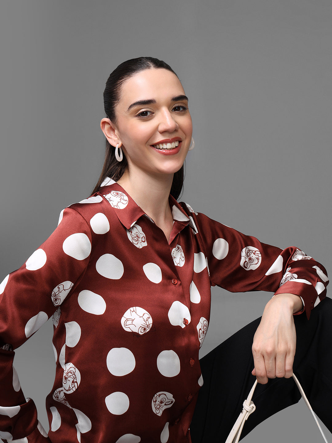 The Disney Simba Shirt brings a playful twist to a classic button-down, featuring bold polka dots paired with charming Simba artwork. Its relaxed silhouette and soft drape make it a fun yet stylish piece for casual outings.